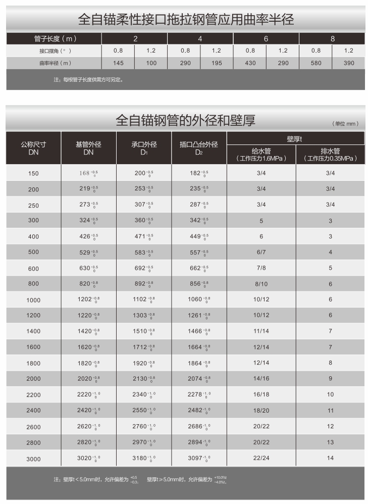 適合埋地、管廊明敷設(shè)施、非開(kāi)挖頂拖管、和輸送直飲水(可消除管道對(duì)水質(zhì)二次污染)的全自錨柔性接口鋼管和不銹鋼襯里復(fù)合鋼管。